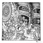 Inked original artwork of a Guardmouse funeral in the Lilygrove library to be used in an upcoming sketchbook.