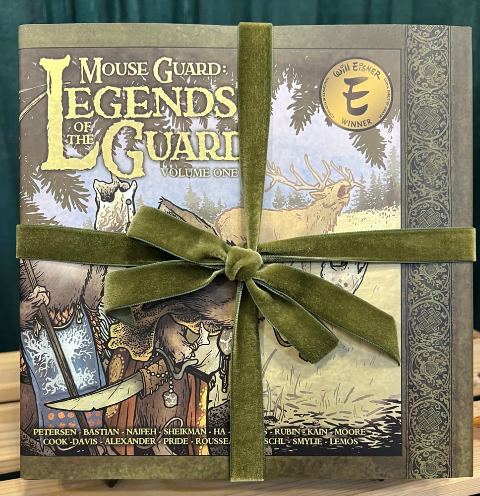 This three volume set includes volumes 1-2 of the Mouse Guard Legends of the Guard Anthology Series. Each volume of Legends of the Guard takes place in the iconic June Alley Inn, where mice share tall tales and legends within the world of Mouse Guard during a storytelling contest of sorts.David Petersen has written and drawn all the tavern scenes and as soon as a new mouse begins to weave his tale a guest artist and writer has been invited to contribute some lore or legend in their art style, to the Mouse Guard world.It's been absolutely wonderful to collaborate with so many talented artists and I'm incredibly proud of all the contributors in this series.*Shipping note: Book shipping is calculated as separate items. If multiple books are purchased and combined shipping is available, we will refund you the difference after the sale.Domestic shipping only**not eligible for any discounts or special order codes**More Shipping & Signature info in our FAQ: mouseguard.bigcartel.com/faq