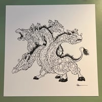 Original Inked Art from 'Discovering Dragons' David's monthly community draw along. Prompts were Psionic, Multi-Headed, & Giraffe.