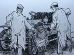 Art is ink on 14" x 11" Strathmore Bristol Board and signed by David Petersen.